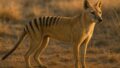 ティラノサウルスが周りを警戒しながらゆっくり歩く、